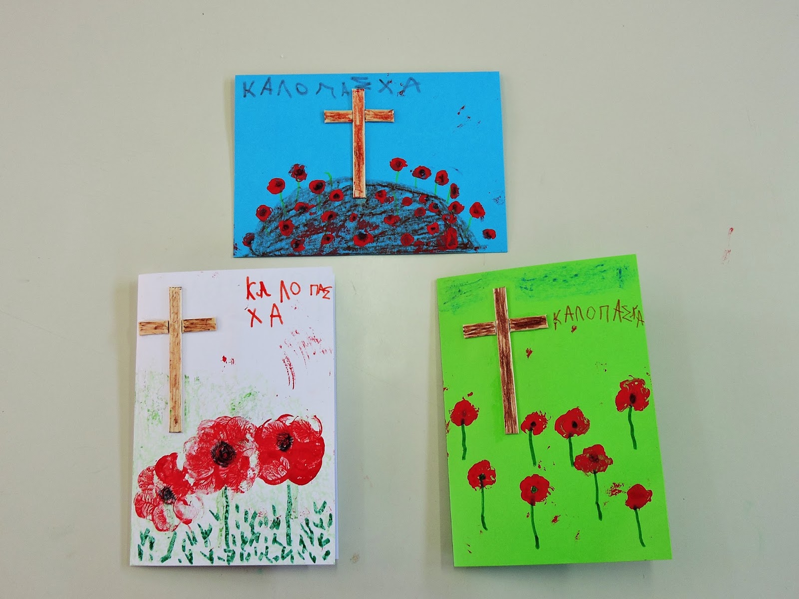Υλικά:έγχρωμα χαρτονάκια Α4.γλωσσοπίεστραμαρκαδόροι,κηρομπογιές,κόκκινη τέμπερα